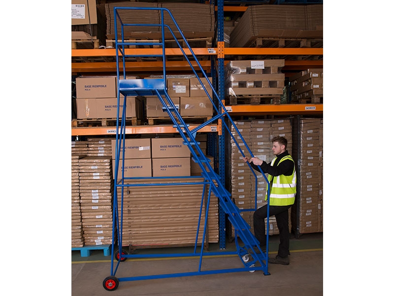 11 tread, welded steel construction steps. Platform height: 2515 mm. Average working height of 4015mm. Overall dimensions: 3465(H) x 1067(W) x 2245(L) mm. Platform dimensions: 585 (L) x 610 (W) mm. 560mm wide steps. Hand lever locking mobilises/immobilises steps. Rubber or punched metal treads. Available in a range of sizes: see our full range of safety steps. All our steps are manufactured to order, therefore please check all dimensions thoroughly as we are unable to accept any returns. Front section: 1050(H) x 650(W) x 3870(L) mm.