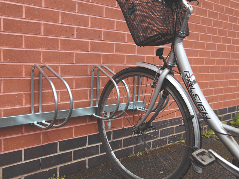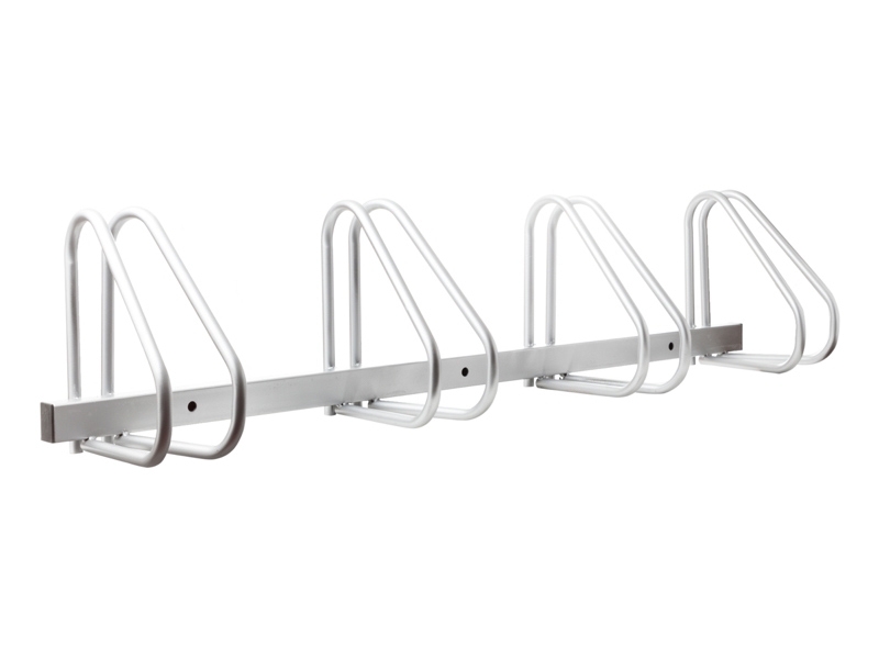 One unit stores 4 cycles. Holders angled at 90 degrees from wall unit. Robust 16mm diameter support bars. Suits most types of bike wheels. Painted finish. Can also be fixed to a floor surface-use rear wheel to secure in this instance.