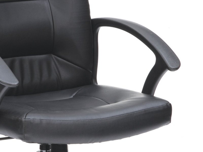 Bonded leather for maximum durability and a stylish look. Easy-to-adjust lock tilt mechanism. Seat height adjusts from 425-515mm. Curved plastic arms offer a comfortable resting solution. Cushioning for additional comfort. Recommended for up to 8 hours usage. Standard black base. 114kg weight capacity. Two year guarantee.