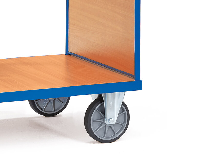 Tubular and angle welded steel framework. Beech veneered heavy duty particle board base deck. 2 braked swivel and 2 fixed castors. Nonmarking grey TPE tyres. Euronorm 1757-3 compliant. Blue RAL5007 powder coated finish as standard. Now available in any colour – details.