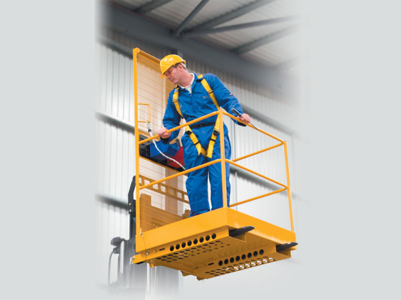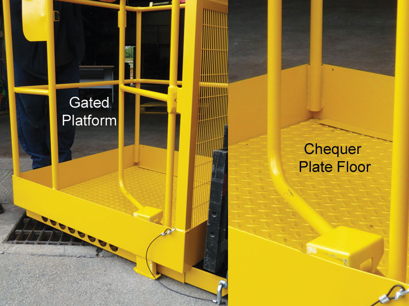 Forklift truck attachment. Economy 1m2 two person working access platform. Non slip floor. Louvre panel. Anchorage for safety harness. Durable but lightweight. 400kg capacity. Standard or gated models. Dimensions (mm) 2100mm(H) x 1000mm(W) x 1000mm(D). Product Weight 95 kg.