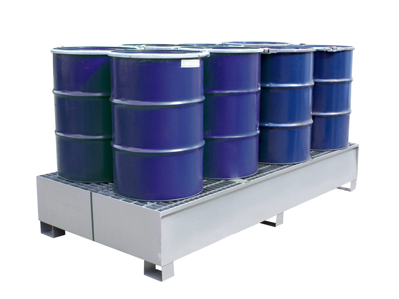Suitable for the storage of 8 x 205(ltr) drums. Help keep floor areas slip-free and consequently avoid workplace injuries. Constructed from strong and sturdy galvanised steel. Dimensions (mm): 465(H) x 1220(W) x 2540(D). Sump capacity (ltr): 1100. Tare weight (kg): 135. Removable mesh deck for easy sump cleaning. Fork hoops for easy movement. Fork hoops ensure that the underside of the sump stays clear of the ground.