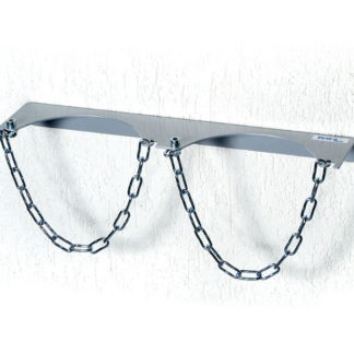 Wall mounted unit for bottles with a maximum diameter 140mm. Sheet steel construction. U-shaped rail pre-drilled for wall fixing. Gas cylinder held securely by steel chain. Hot dip galvanised.