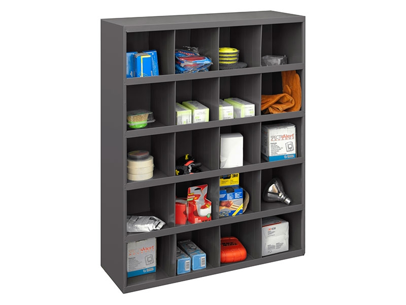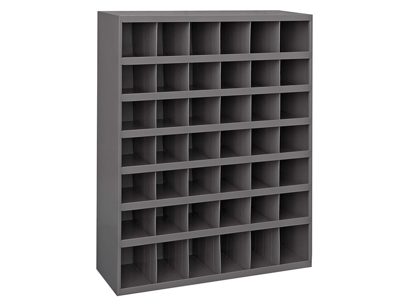 Modular heavy duty small parts bin units. Manufactured from prime cold rolled steel. Grey powder coated finish. Ref 338 comes with lockable twin doors. 4-72 bin compartments.