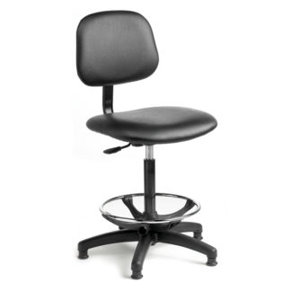 Fully padded hardwearing fabric or vinyl upholstered operator high-lift chair. 5-star glide base. Gas lift height adjustment of 550-800mm & 220Hmm footring. Optional arms available.