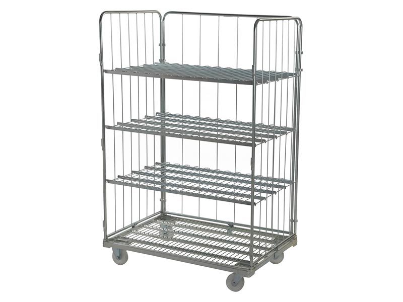 500kg capacity. Extra large euro standard base 1200 x 800mm. 3 sided, panels with rod infill. 2 fixed and 2 swivel 125mm diameter castors. 1630mm Internal height. Bright zinc plated finish. Wheel diameter 125 mm. Dimensions 1820(H) x 1200(W) x 800(D).