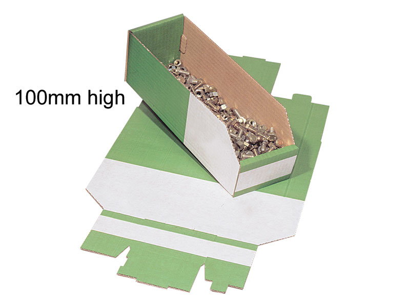 Semi open fronted. made from strong corrugated fibreboard. cost effective. flatpacked for easy assembly with self locking tabs. easy write identity panel.