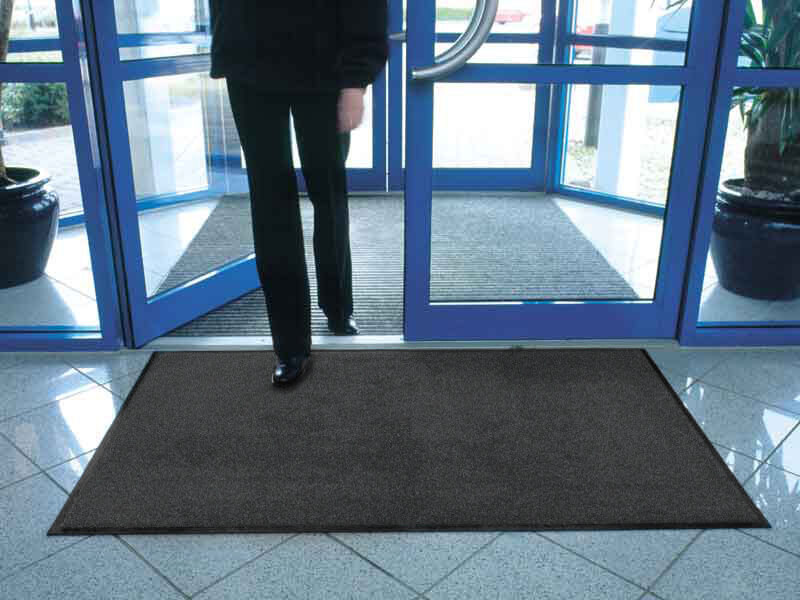 Traps upto 90% tracked in dirt as well as moisture, grit and grease. Bleach and fade resistant, 11 year warranty against colour loss. Non-skid nitrile rubber backing. Suitable for use indoors in areas of heavy usage. Smaller sizes can be washed in a domestic washing machine. Available in four sizes and colours. Holds up to 3.5 litres of water per m² and 800g dry dust.