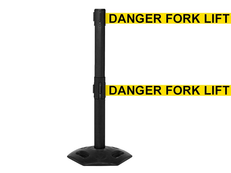 Outdoor Twin Belt Barrier 3.4m Black, Yellow Belt DANGER FORK LIFT TRUCKS