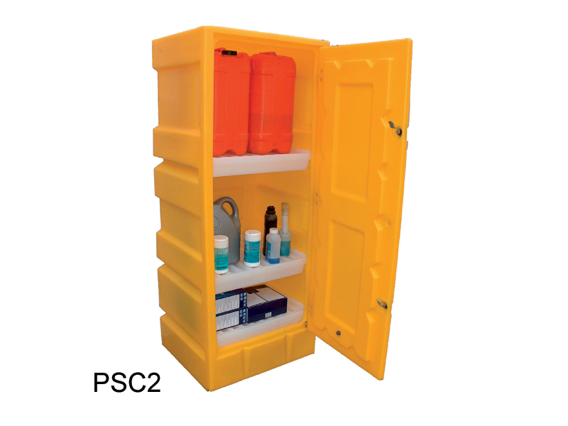 Polyethylene cabinet fitted with a hinged lockable door and two shelves. Perfect for use in commercial settings as a low maintenance storage point. Dimensions (mm): 990(H) x 440(W) x 545(L). Weight (kg): 15. Sump capacity: 30L. Shelf capacity: 12kg UDL. Also available in blue colour – please enquire.