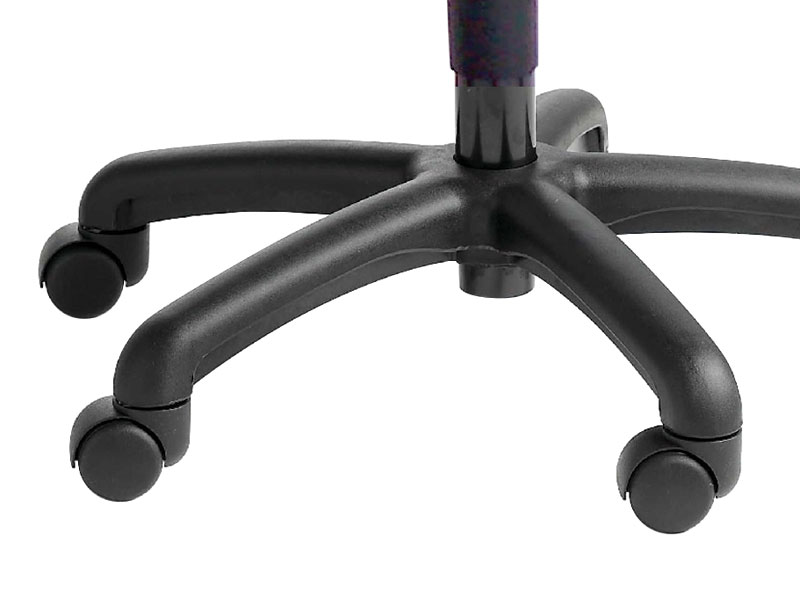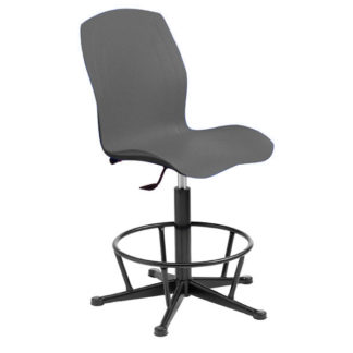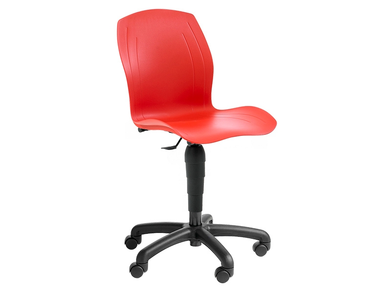 Polypropylene hardwearing chair. 5-star base with castors. Manual screw seat height adjustment 450-590mm. Suitable for food industry or factory floor use. Washable or steam clean.
