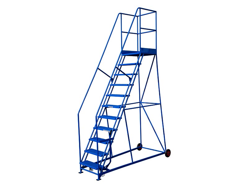 11 tread, welded steel construction steps. Platform height: 2515 mm. Average working height of 4015mm. Overall dimensions: 3465(H) x 1067(W) x 2245(L) mm. Platform dimensions: 585 (L) x 610 (W) mm. 560mm wide steps. Hand lever locking mobilises/immobilises steps. Rubber or punched metal treads. Available in a range of sizes: see our full range of safety steps. All our steps are manufactured to order, therefore please check all dimensions thoroughly as we are unable to accept any returns. Front section: 1050(H) x 650(W) x 3870(L) mm.