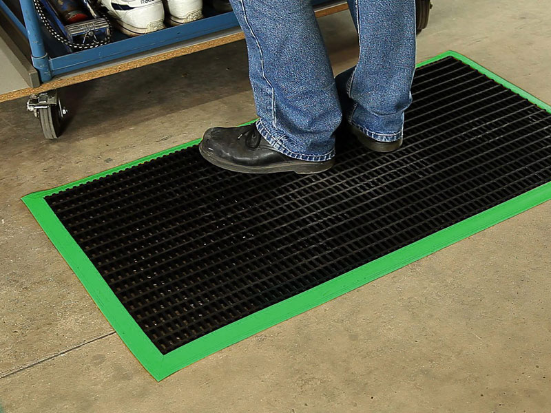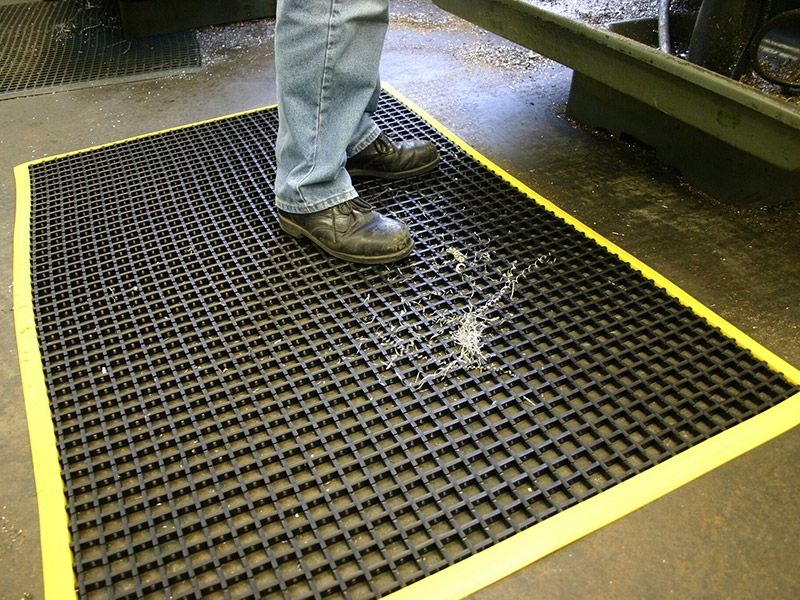 Flexible Vinyl woven workshop mat. Debris falls through holes. Helps reduce fatigue. Resists oils and grease and is easy to clean. Bevelled edges to reduce risk of trips in choice of colours.