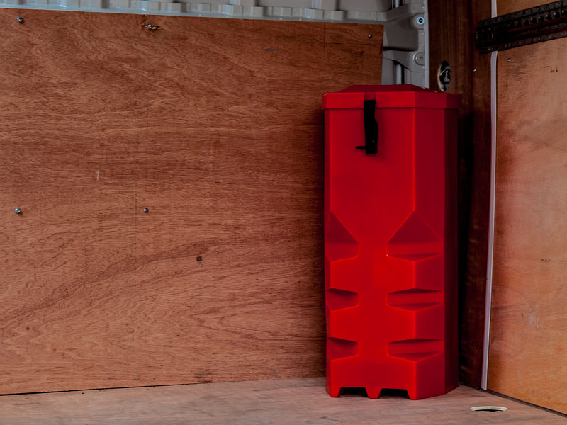 Single Polyethylene Vehicle Extinguisher Cabinet for extinguisher between 9 – 12kg. High impact plastic resistant to most chemicals. Includes internal spring to locate extinguisher.