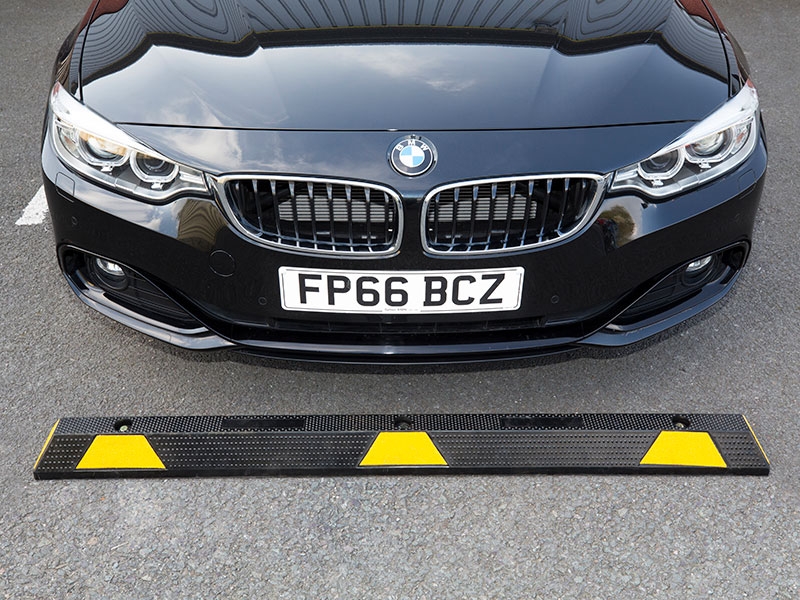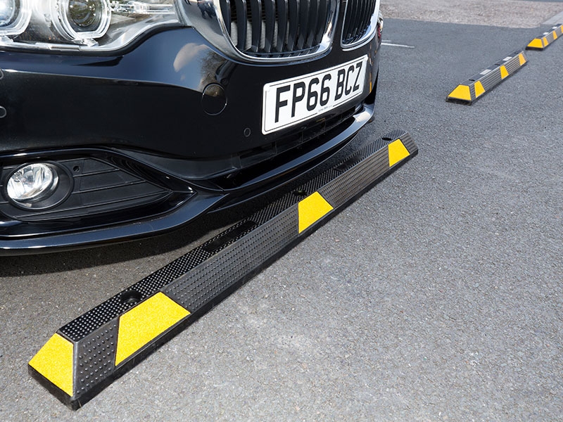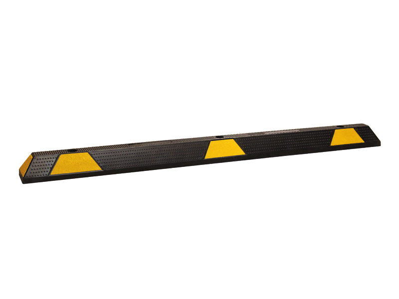 Recycled rubber construction. Hi visibility yellow sections. Fixings included. Acts as a wheel stop for restricted parking areas. Can also be used to mark out parking bays or cycle/pedestrian only lanes.