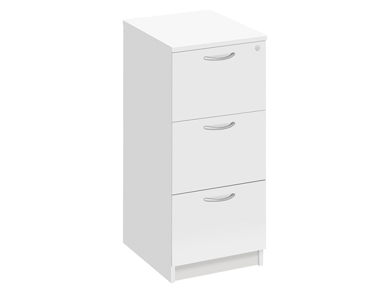 Wooden filing cabinet designed to hold files and folders for your business or home office. Featuring lock and key for storing sensitive material. Large pull-out drawers make it easy to access files from front to back. Can be used as an addition to other Fraction Range office products. Scratch-resistant finish allows you to use them on a daily basis without damage. Choose from three stylish colour options to match your current furniture. 1067mm unit height.