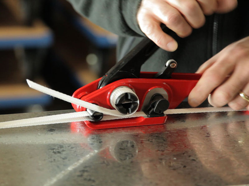For many users, polyester strapping is a viable option to steel strapping. H/D tensioner/cutter for 12-19mm woven polyester strapping. Safe and easy to handle.